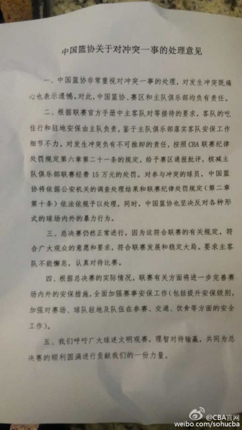 【四川被通报批评罚款15万 辽宁冲突球员将按公安调查结果依法处理】中国篮协发布处理意见,四川赛区安保工作细节不力,被通报批评,核减联赛经费15万元。参与冲突的球员将按照公安机关调查处理结果和联赛处罚规定依法依规处理。