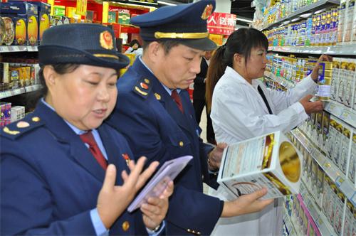 4月7日,该分局文化宫街工商所在维多利购物中心超市对上市的婴幼儿配方乳粉的标识,检验报告和进货台帐进行检查。(郭智军)