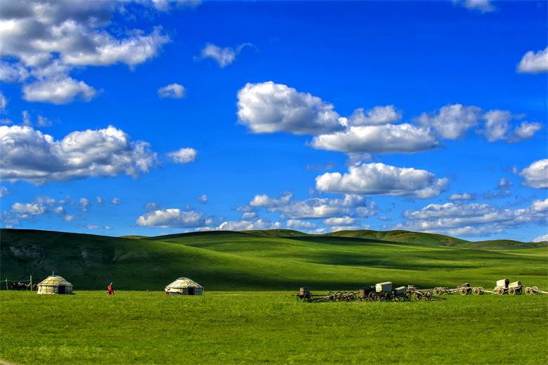 天蓝,云白,草绿,水清,锡林郭勒草原向世人展示着迷人的美丽画卷。