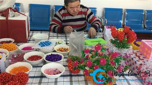 随后,大家来到福利院二楼,看到有几位智障人员在认真、专注地编织工艺品,丝毫不受外界的影响,其一丝不苟的精神为之动容。