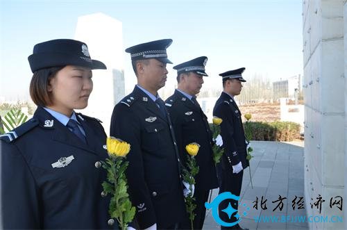 包头铁路公安处民警面向纪念碑排起整齐方阵向英烈致敬。