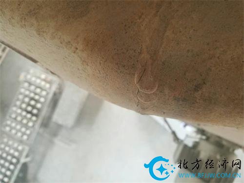 据介绍,锡林郭勒盟镶黄旗西联矿业有限责任公司的是一家经营开采花岗岩,生产板材的企业,本次检验的电动单梁起重机是厂区内使用频率最高的一台起重机械,该设备额定起重量为5吨,提升高度7米,跨度13.8米,于2012年投入使用。检验过程中,检验人员在进行外观检验时发现该设备主梁两侧外盖板有轻微波浪变形,细心的检验人员发现此情况后立即登上该设备主梁,经过查找后发现该设备主梁盖板左右两侧分别存在长度为35mm、40mm的裂纹,通过对主梁下挠度的测量,结果超出检验规范要求38.3mm,如该起重机在此情况下继续作业,极易引发安全事故。