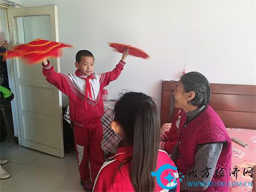 有的队员在家长的带领下,来到内蒙古师范大学老干部处看望退休教师,队员们纷纷表演节目,并为老人们送上代表吉祥安康的鲜花。