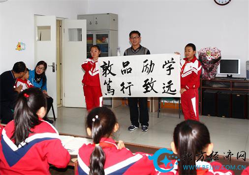 师范大学退休书法家还亲笔题字,写下了锡小校训“敦品励学,笃行致远”,鼓励同学们,志存高远,将来成为祖国有用之才。老教师们对孩子们的到来表示欢迎,还为孩子们表演了集体朗诵。