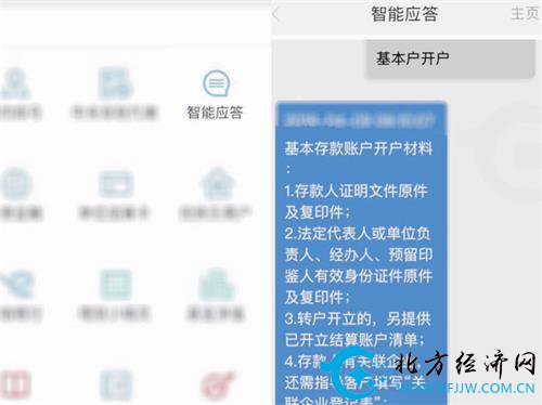 三是线上查询开户要求。客户可通过手机银行的"智能应答"功能,无需签约即可查询到开户所需资料清单和开户流程,为企业提供便利。
