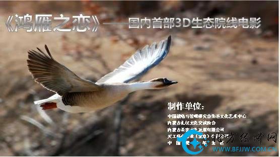 据了解,电影《鸿雁之恋》,是由中国战略与管理研究会生态文化艺术中心、北京天工联合影业有限公司、内蒙古礼仪文化交流协会、内蒙古圣窑文化发展有限公司等影视制作机构一道,为响应党中央和习近平主席关于加强生态文明建设的伟大号召,促进生态环境事业和人与自然的和谐发展,传播大美内蒙古之生态文明和民族文化,构建内蒙古独具特色的生态文化体系,推动为内蒙古的经济发展和精神文明、生态文明建设,在第十一届世界荒野大会即将在我国举办之际,联合拍摄的我国第一部3D生态主题院线电影。